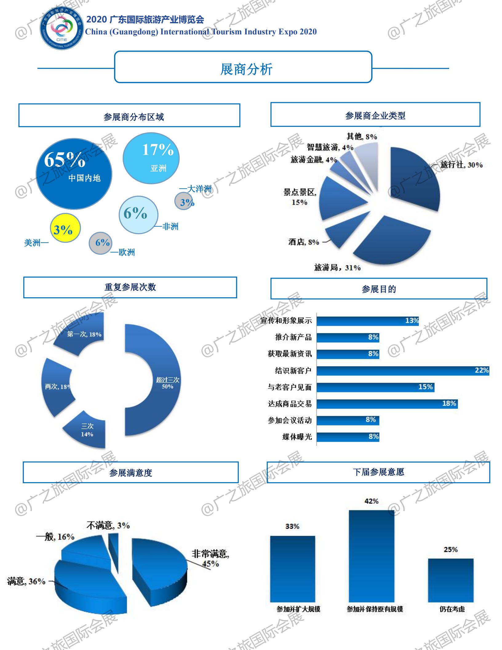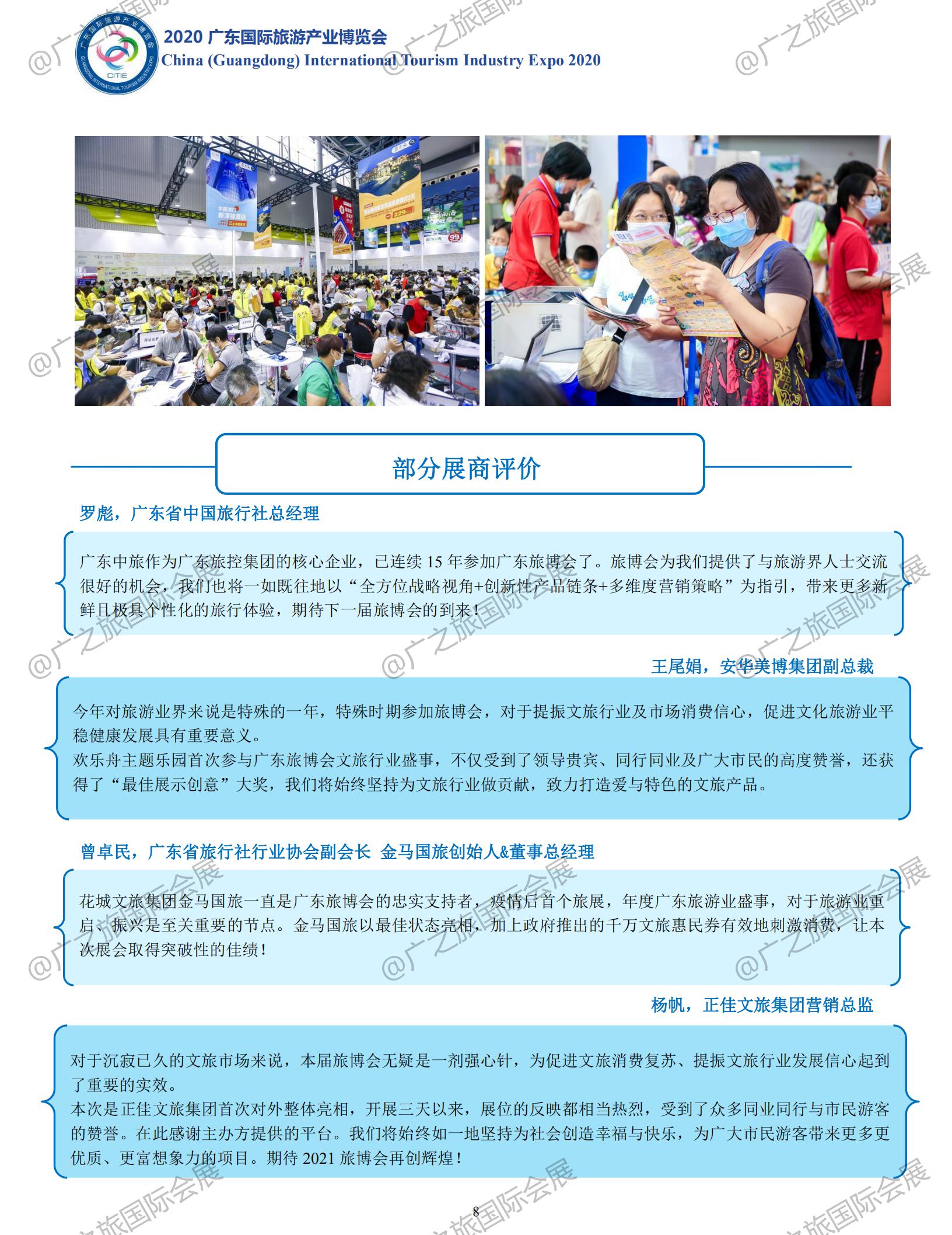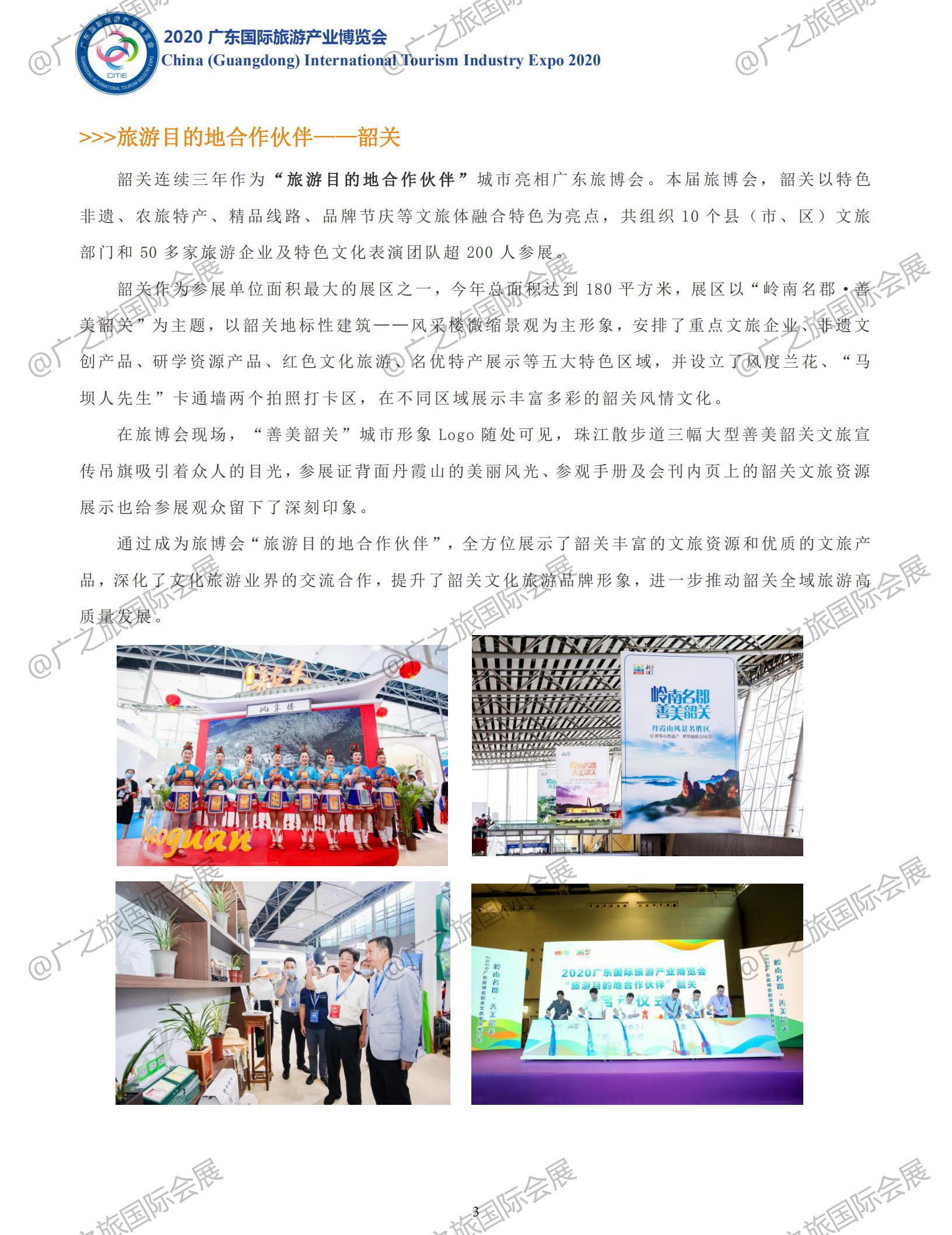 作為國內(nèi)疫情防控階段性成效已進一步鞏固,復工復產(chǎn)取得重要進展,經(jīng)濟社會運行秩序也加快恢復背景下舉辦的廣東首場重大國際文旅盛會,2020廣東旅博會于9月11-13日順利舉行。展會總展覽面積3萬多平方米,設置4大主題展館,共吸引40多個國家及地區(qū)、20多個省市自治區(qū)、省內(nèi)21個地市文旅代表團、18家旅行社及多家大型景區(qū)景點、文旅集團參展參會。