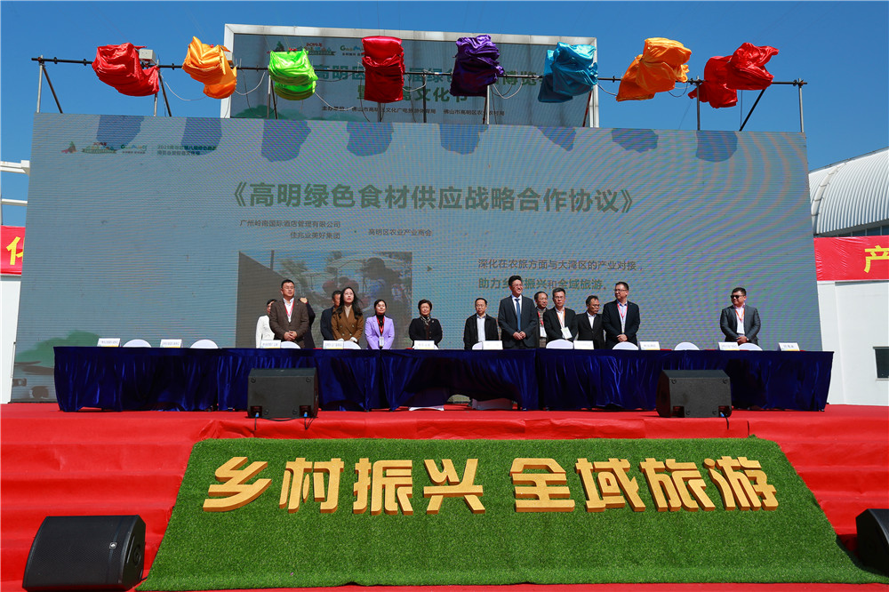 開(kāi)幕式上進(jìn)行了萬(wàn)畝水稻、萬(wàn)畝花卉、萬(wàn)畝堅(jiān)果及黿保護(hù)等五個(gè)農(nóng)業(yè)項(xiàng)目簽約;高明區(qū)農(nóng)業(yè)農(nóng)村局向十家食材供應(yīng)商授予“高明鮮生”食材基地牌匾。同時(shí),嶺南酒店廚師廚藝工作室與高明本土粵菜師傅共同發(fā)布《高明出品經(jīng)典菜單》;高明文廣旅體局首度發(fā)布《“近山樂(lè)水 品味高明”全域生態(tài)休閑旅游精品線路》,正式啟動(dòng)“近山樂(lè)水 品味高明”萬(wàn)人游高明活動(dòng)。此外,開(kāi)幕式上,嶺南酒店與高明區(qū)農(nóng)業(yè)產(chǎn)業(yè)商會(huì)簽訂《高明綠色食材供應(yīng)戰(zhàn)略合作協(xié)議》,計(jì)劃引進(jìn)高明優(yōu)質(zhì)食材到嶺南酒店旗下星級(jí)酒店;華南龍頭旅行社嶺南控股廣之旅與高明文廣旅體局簽訂《打造粵港澳大灣區(qū)高明旅游目的地市場(chǎng)戰(zhàn)略合作協(xié)議》,共同提升高明農(nóng)旅資源的品牌影響力,深化高明在農(nóng)旅方面與大灣區(qū)的產(chǎn)業(yè)對(duì)接。開(kāi)幕式后,各地嘉賓及媒體參加了在佛山君御溫德姆至尊酒店舉行的《高明出品經(jīng)典菜單》品鑒會(huì)。